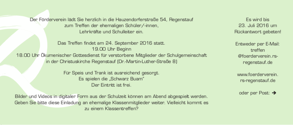 Der Förderverein lädt zusammen mit der Max-Ulrich-von-Drechsel-Realschule in Regenstauf ein:
