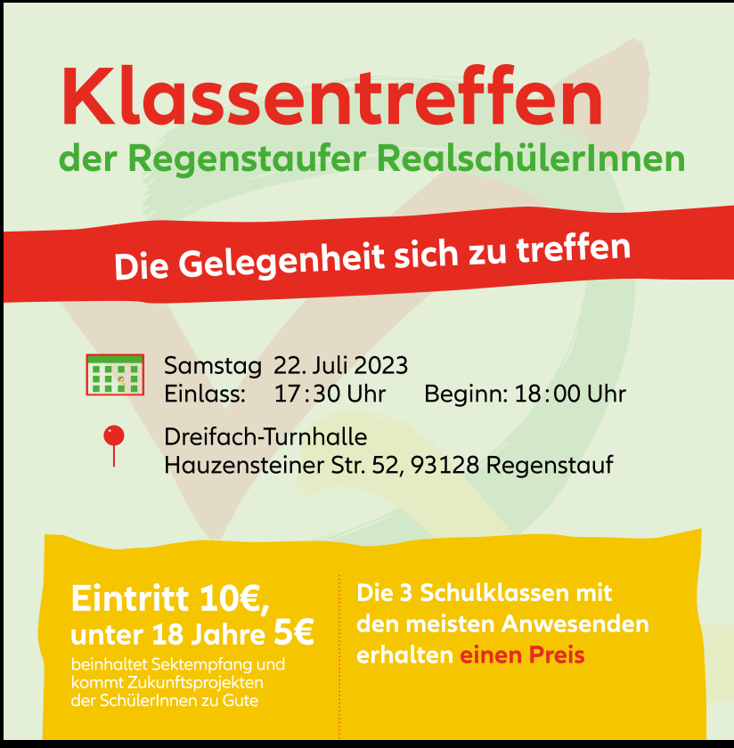 Ein großes Klassentreffen mit mindestens 400 Gästen fand am 22. Juli 2023 in der Sporthalle und auf dem Schulgelände statt.